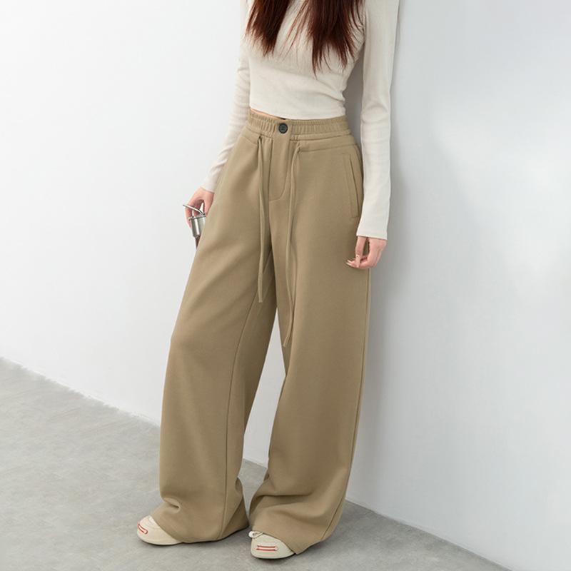 Коричневые повседневные спортивные штаны женские осенне-зимние новый дизайн с чувством высокой талии прямые на шнуровке узкие широкие штаны