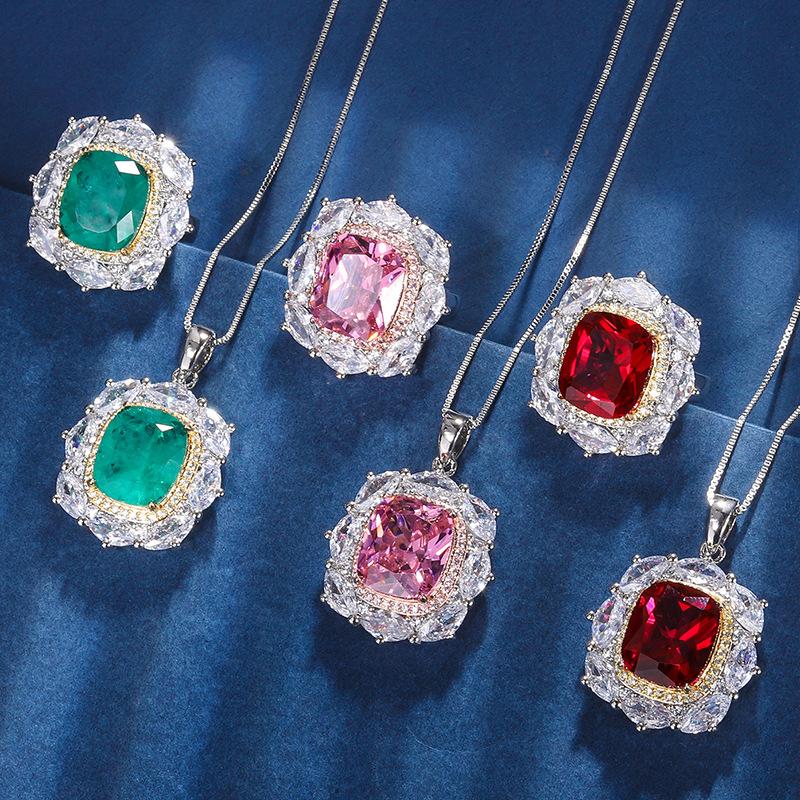 Ювелирные изделия Медное основание с золотым покрытием Имитация цвета Сокровище Свет Роскошный Набор с разделением цвета Подвеска Кольцо 12 * 14