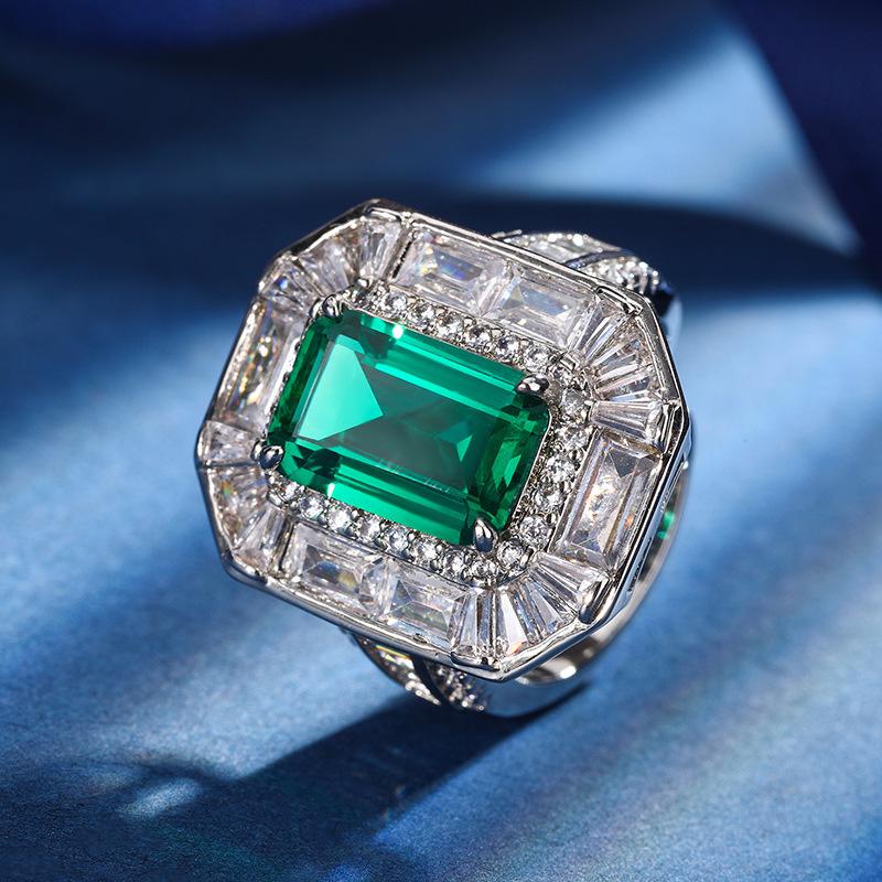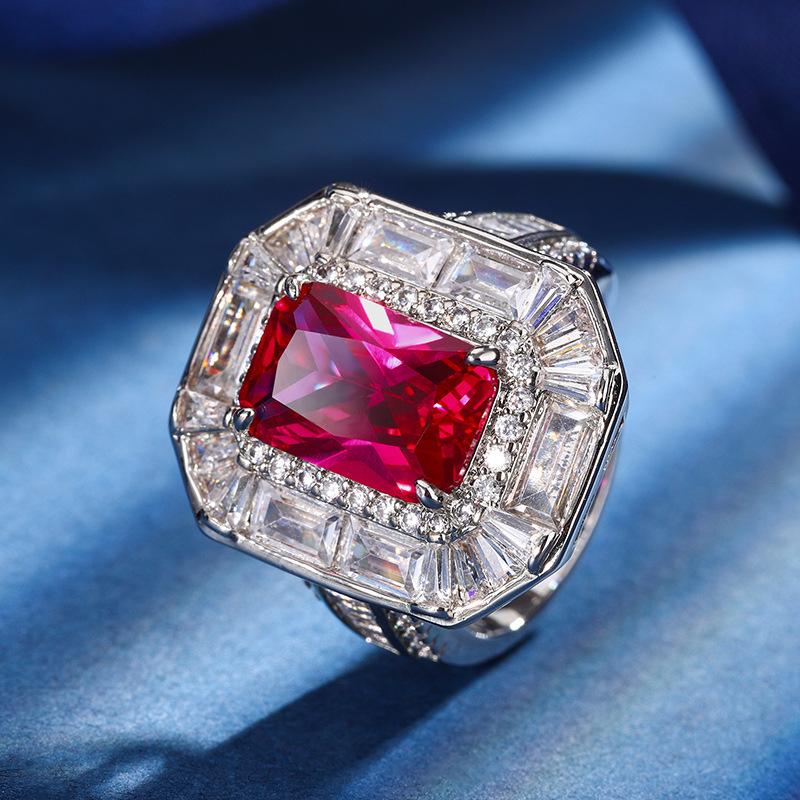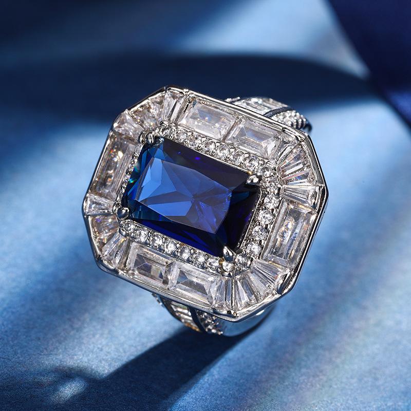 Jewelry Copper Bottom Gold-Plated Simulation Color Treasure Corundum Square Diamond 8 * 12 Temperament Ring Set Women