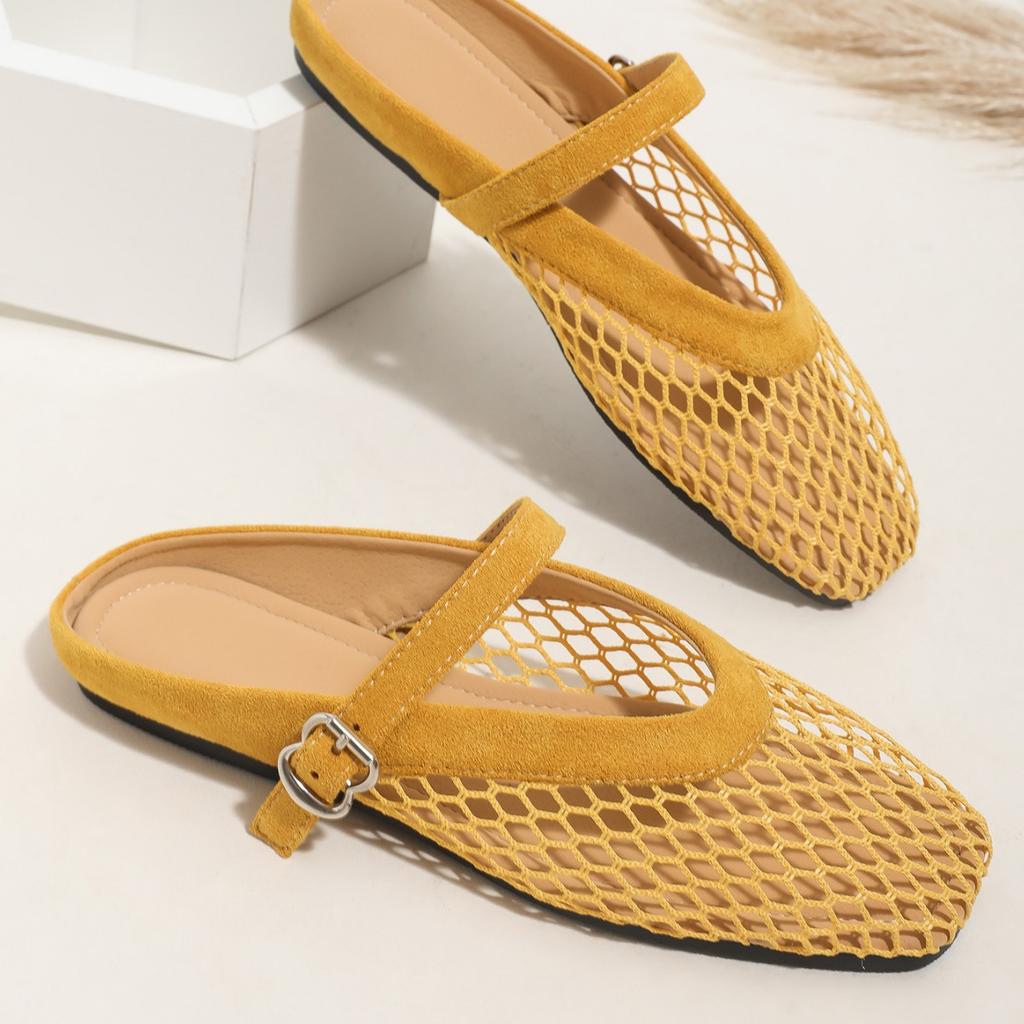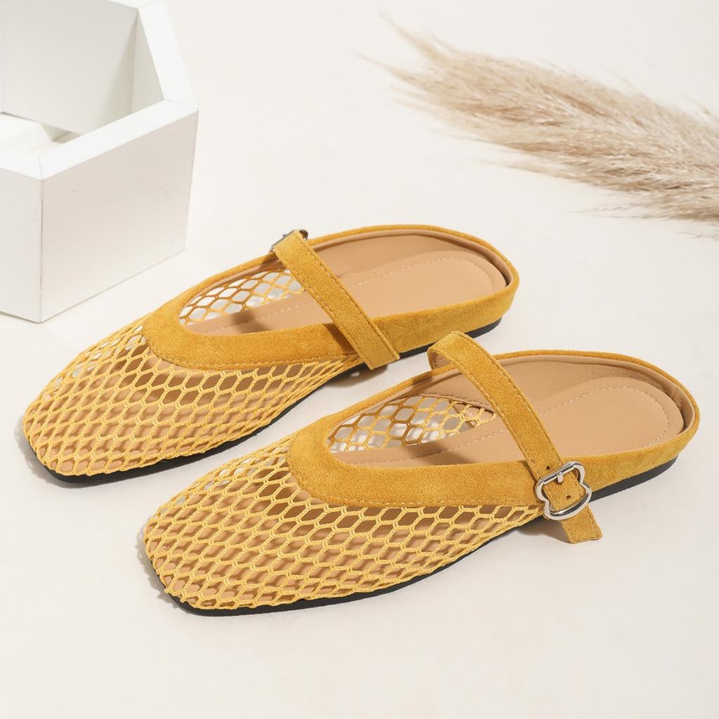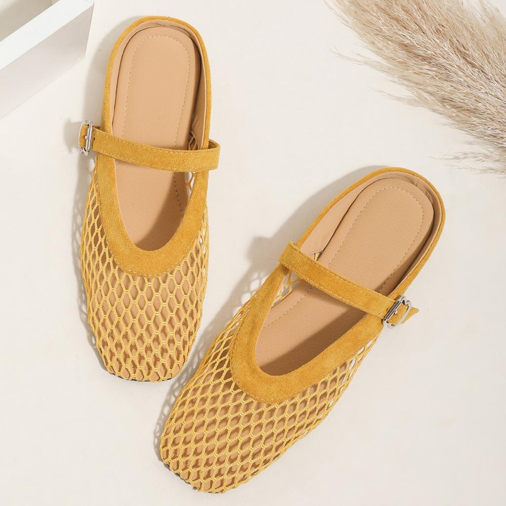 Дышащие туфли Мэри Джейн из французской сетки на плоской подошве, женская обувь 2025, новинка весна-лето, ретро, сетка, ажурные