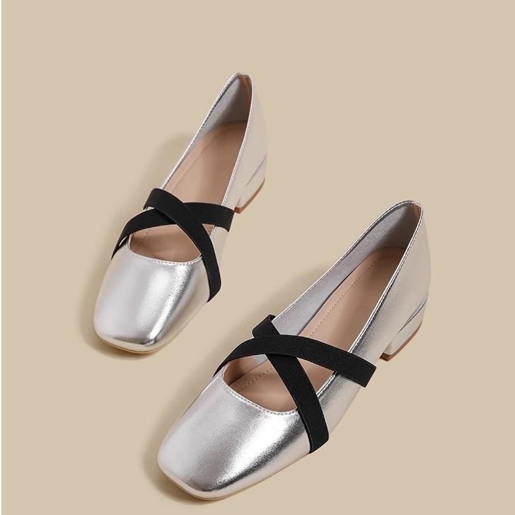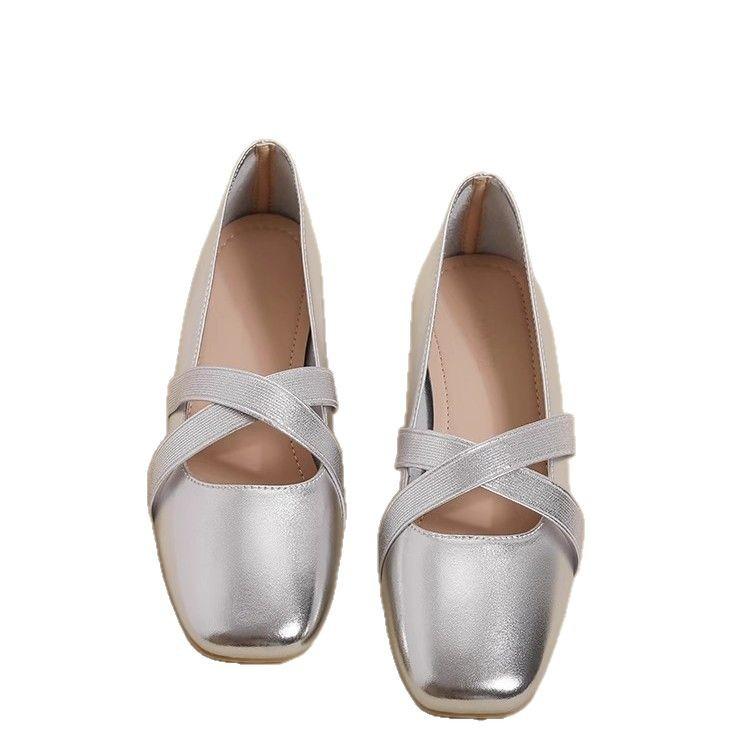 Серебряные балетки женские летние туфли 2025 года, новые французские туфли на плоской подошве с легким бризом и темпераментом на плоской подошве Мэри Джейн
