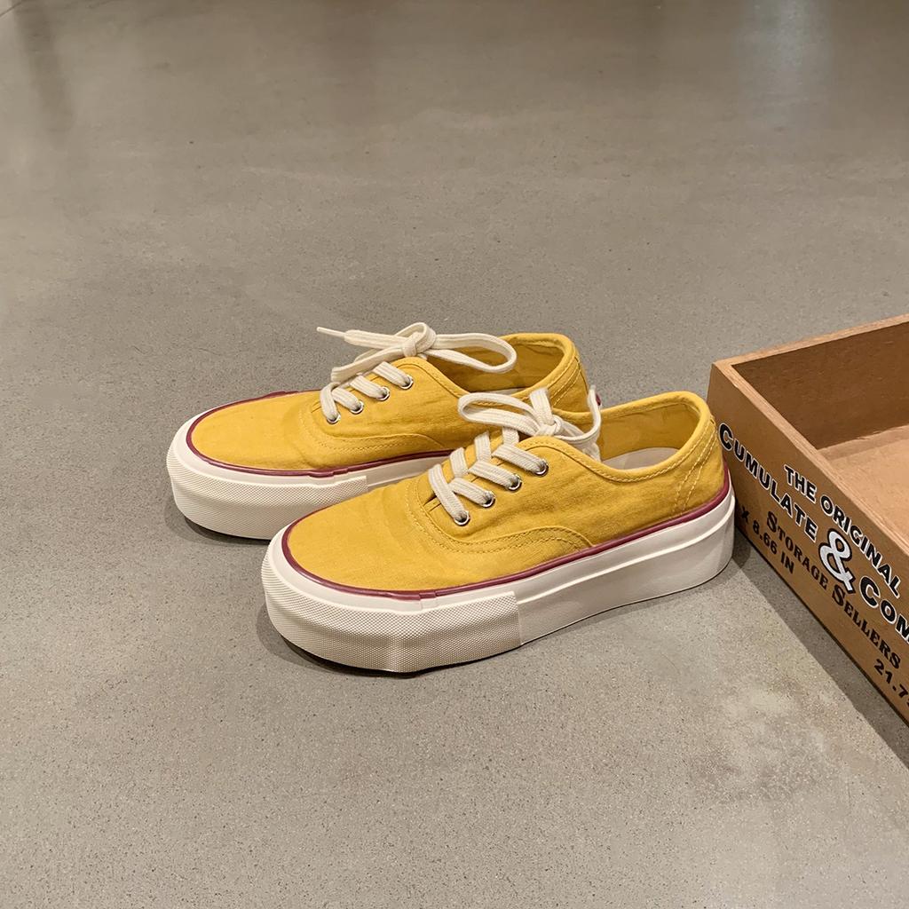 Виноградный mother studiolee дышащий лен контрастный цвет шнуровка круглый носок повседневный ветер толстая подошва обувь женские парусиновые туфли