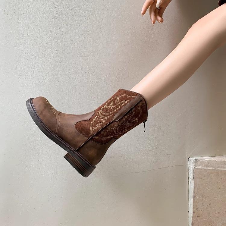 Ziyan Vintage British Travel Wear Western Boots Embroidered Knight Boots Short Boots Women's Martin Boots Merard Summer