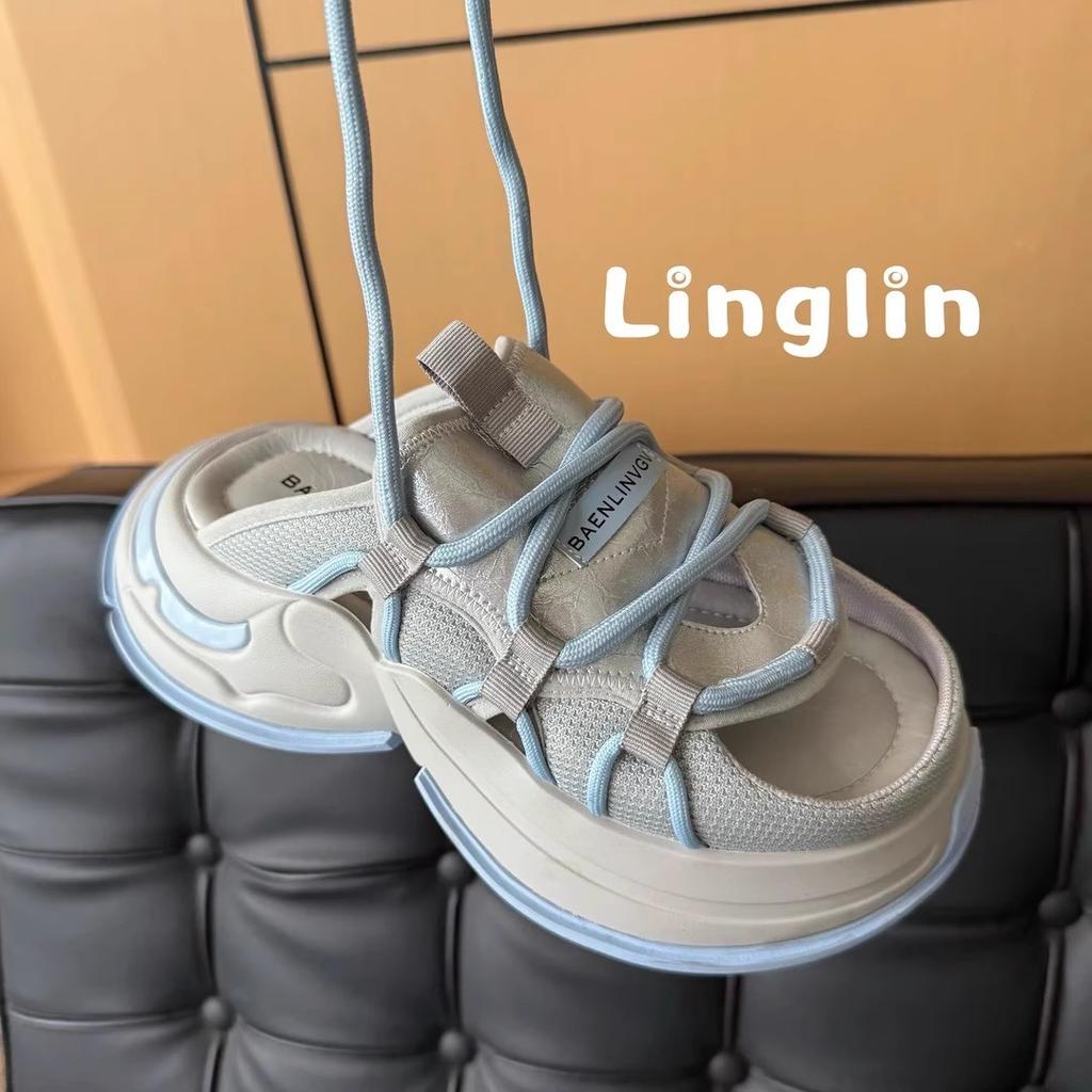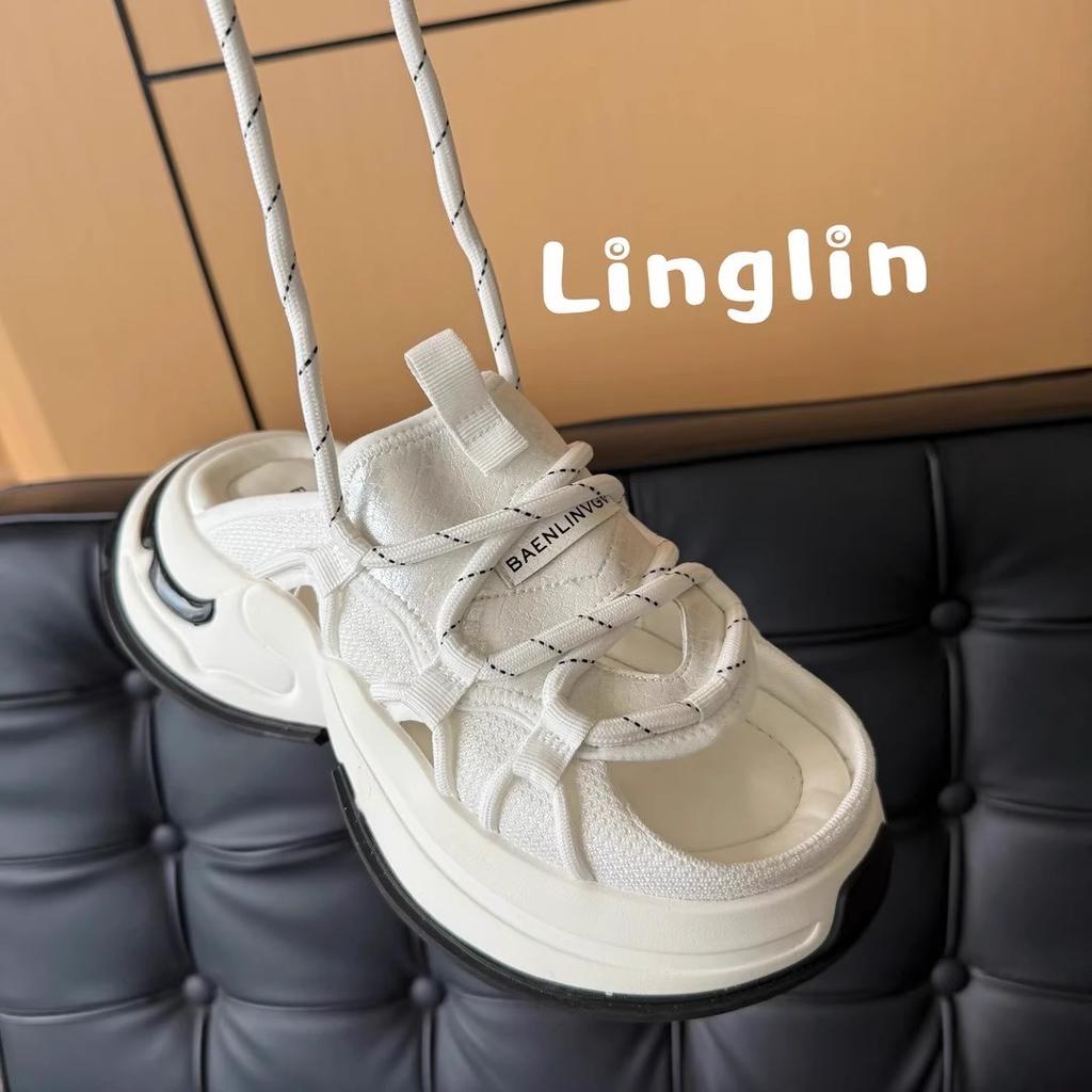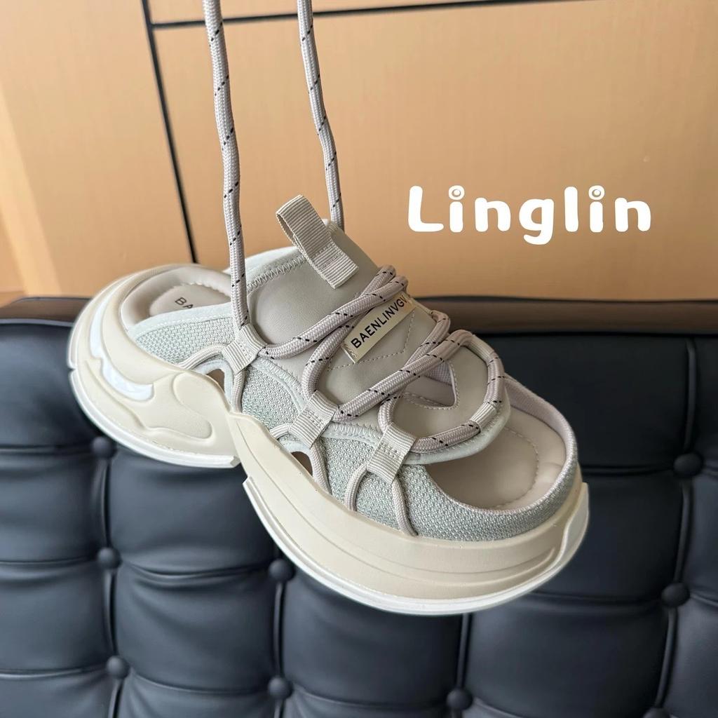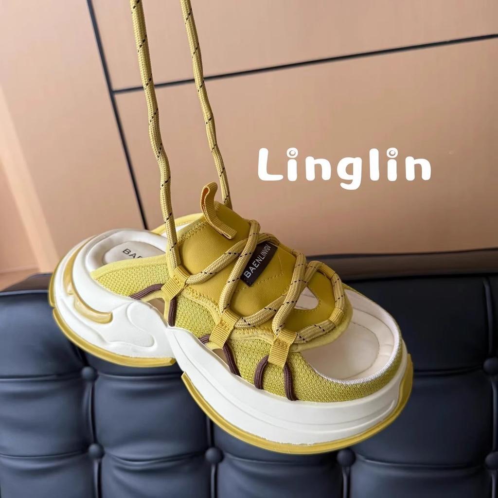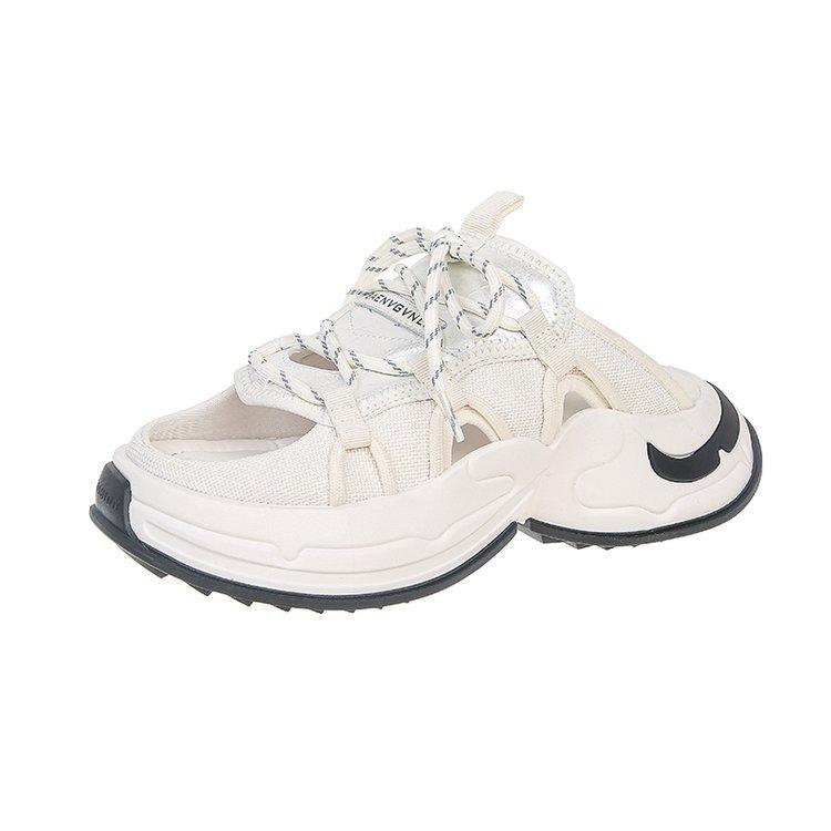 Leather thick-bottomed muffin open-toed cool slippers for women's outerwear 2025 summer new slack muller dad half slippers