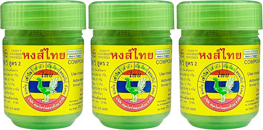 Hong Thai – Thai Herbal Inhalant 10g – Set of 3 Jars – Natural Menthol Formula – Multipack for Congestion & Dizziness Relief