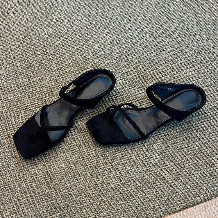 Версия из мягкой кожи~ Простые повседневные туфли с закрытым носком и сандалии женские ретро универсальные с квадратным носком на танкетке, носить крутые шлепанцы