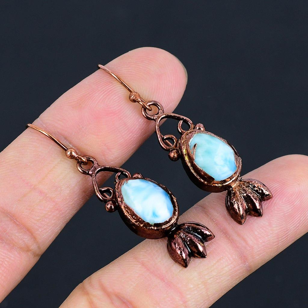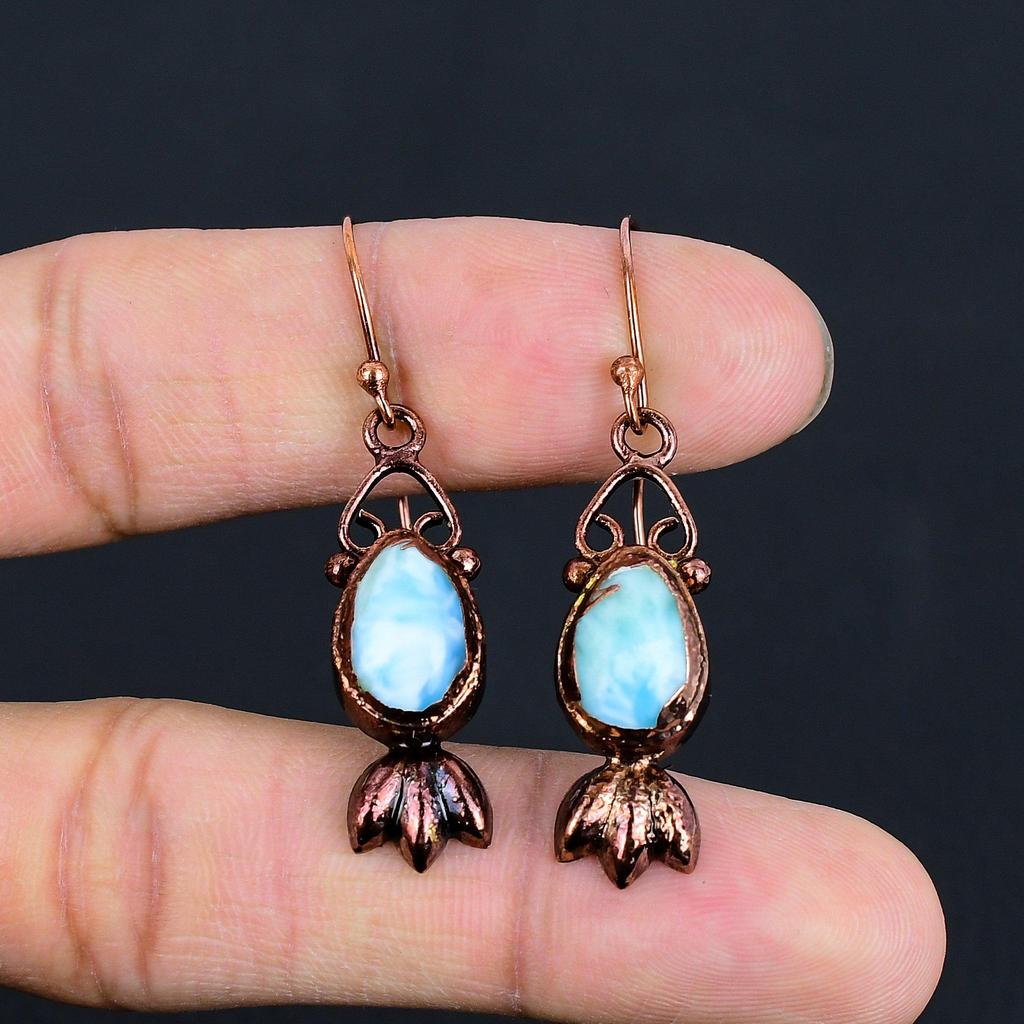 Серьги с ларимаром, Медная гальванопластика, Серьги с драгоценными камнями, Подарок для нее, Ручная работа, Изящные украшения
