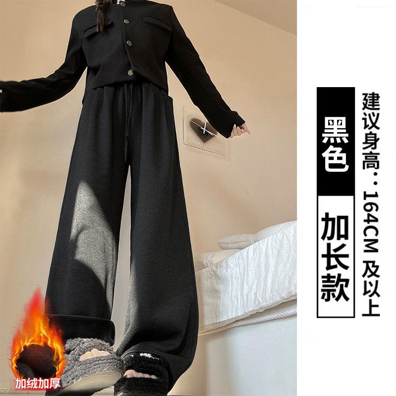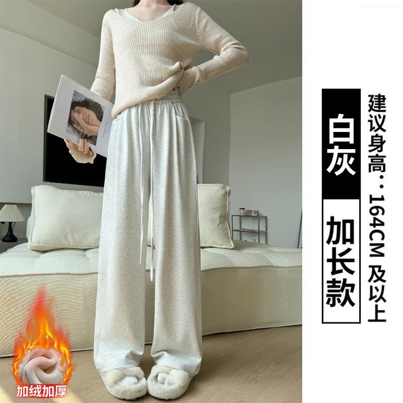 Серые брюки из клейкого риса женские весенне-осенние новые с высокой посадкой, свободные повседневные прямые брюки, для ходьбы, ленивые, трикотажные, мягкие, восковые, широкие брюки