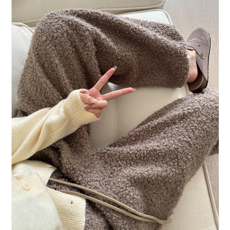 Женские брюки палаццо из овечьей шерсти, новые осенне-зимние тонкие повседневные спортивные брюки с драпировкой, прямые, утолщенные, с высокой талией, велюровые спортивные брюки