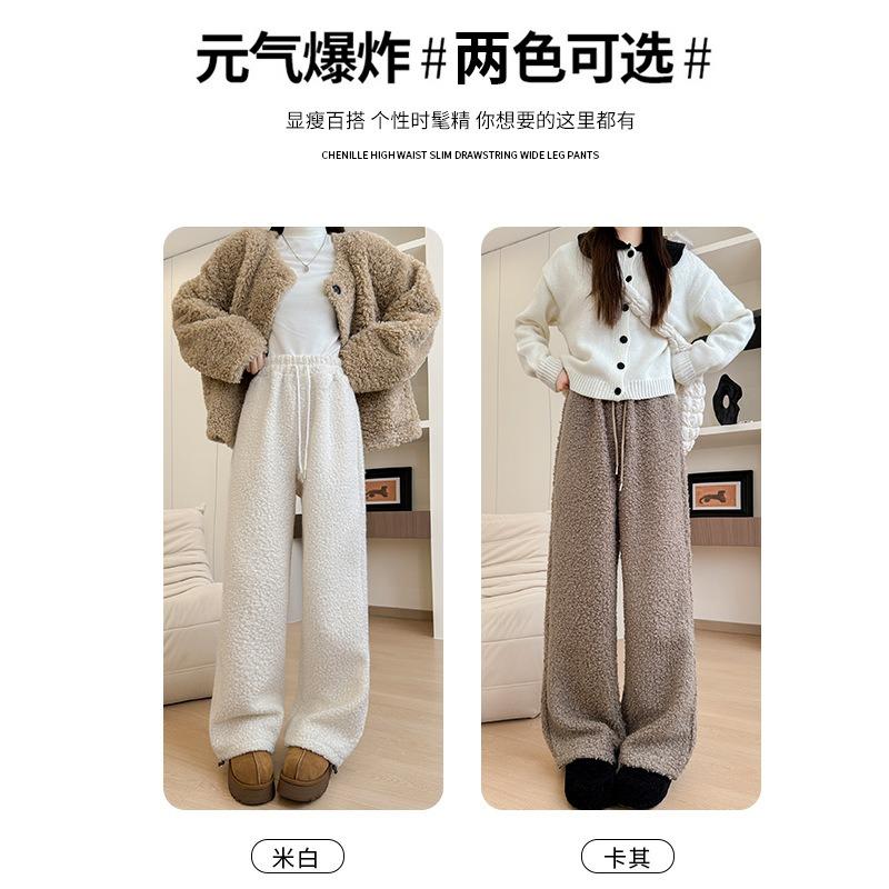 Женские брюки палаццо из овечьей шерсти, новые осенне-зимние, утолщенные, ленивые, с высокой посадкой, прямые спортивные брюки, облегающие, свободные, повседневные спортивные брюки