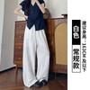 Брюки палаццо из льна Tencel с необработанным краем, женские, летние, новые, драпирующиеся и тонкие прямые брюки, лен хлопок, повседневные брюки