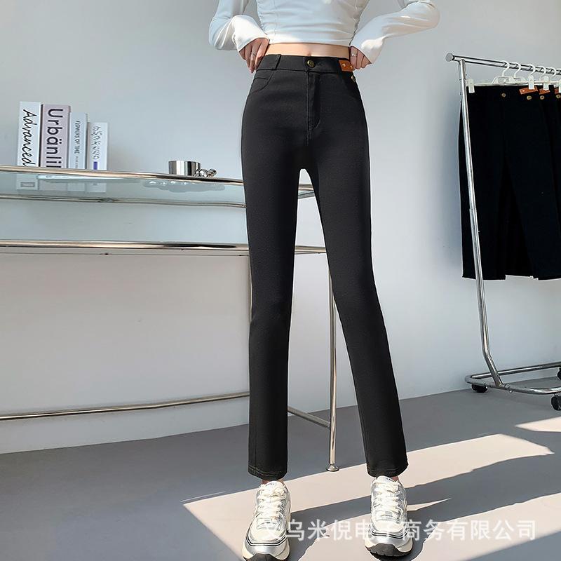 Брюки-трубы женские новые весенне-осенние с высокой талией узкого кроя девятиточечные черные брюки женские маленькие прямые джинсы — купить товар онлайн с бесплатной доставкой по всему миру!
