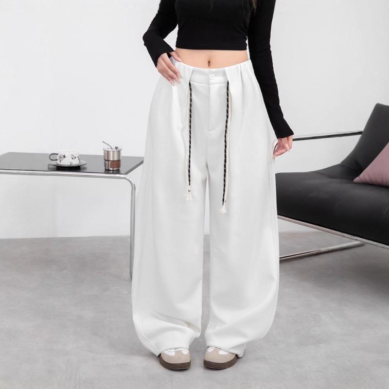 Женские брюки с широкими штанинами, весенне-осенние новые, с высокой посадкой, свободные, прямые, повседневные, драпирующиеся, ленивый ветер, спортивные брюки-сабли