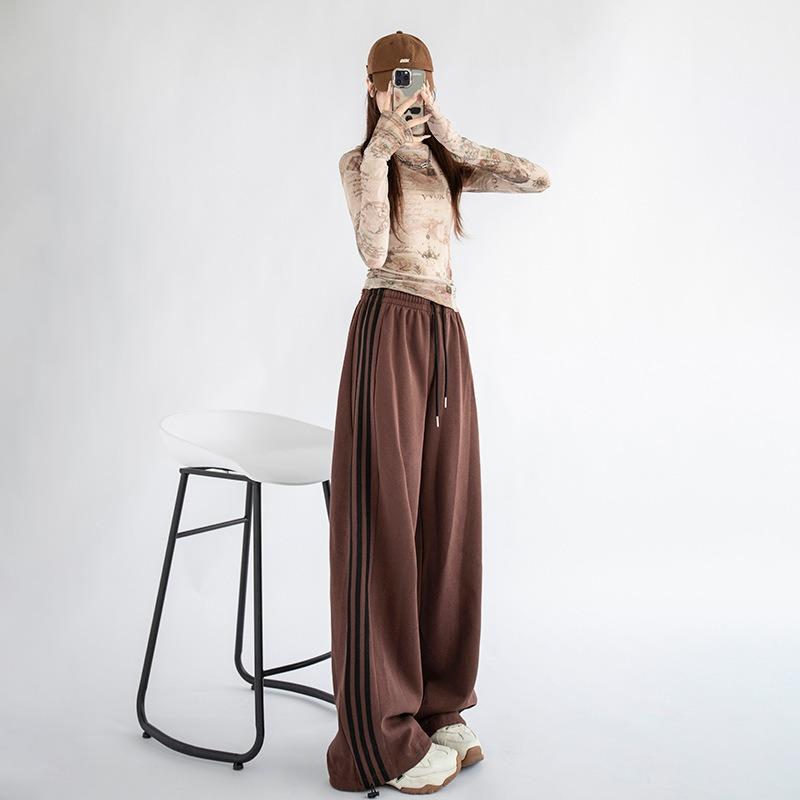 Женские спортивные брюки новые весенне-осенние с высокой посадкой драпированные прямые широкие брюки тонкие повседневные свободные спортивные брюки