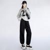 Серые спортивные штаны женские весенне-осенние свободные с завязками новые спортивные штаны с высокой талией прямые фонарики повседневные брюки