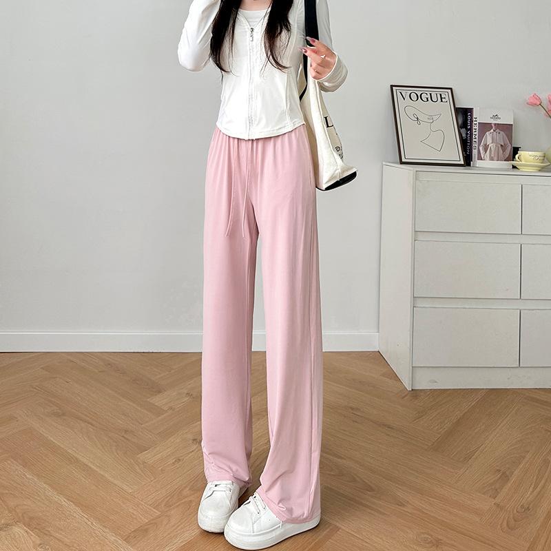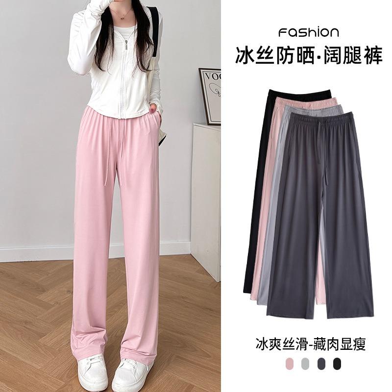 Женские брюки палаццо из ледяного шелка, новинка лета, тонкие, зауженного кроя, прямые, драпирующиеся, черные, повседневные, солнцезащитные