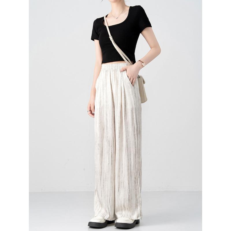 Летние брюки-палаццо из сатина Yamamoto, драпирующиеся, холодные, с высокой талией, тонкие, свободные, повседневные, прямые, спортивные, грязные брюки женские