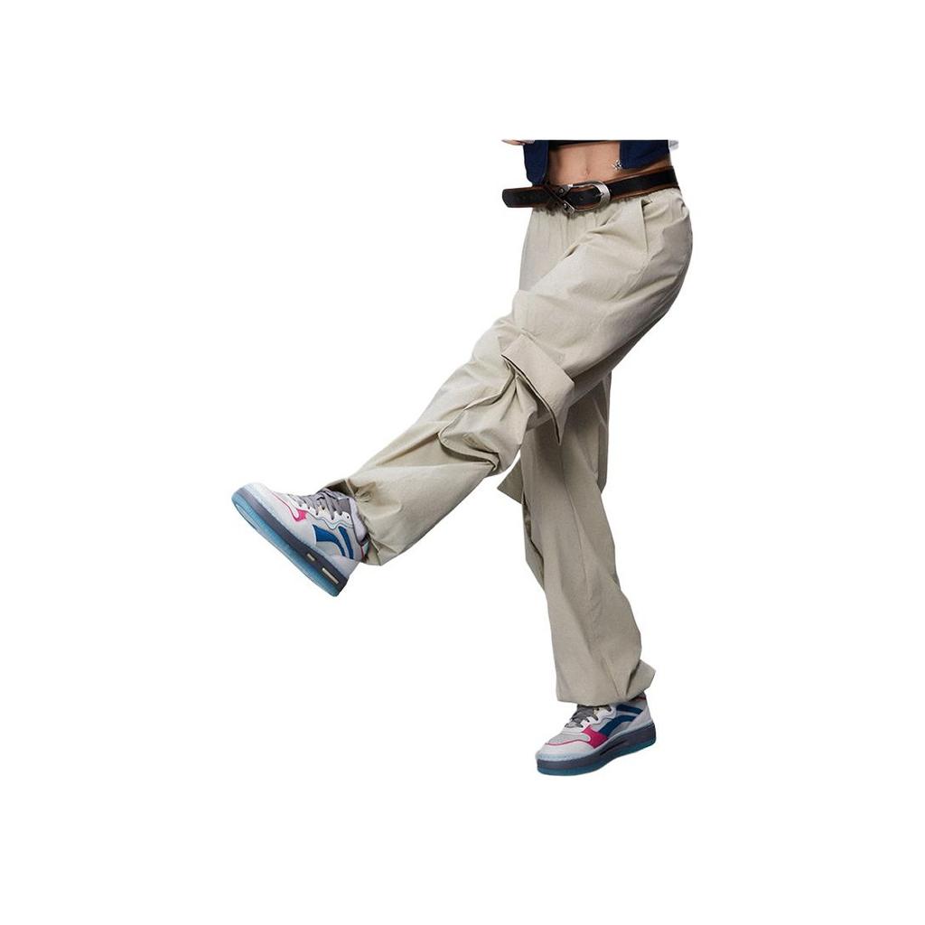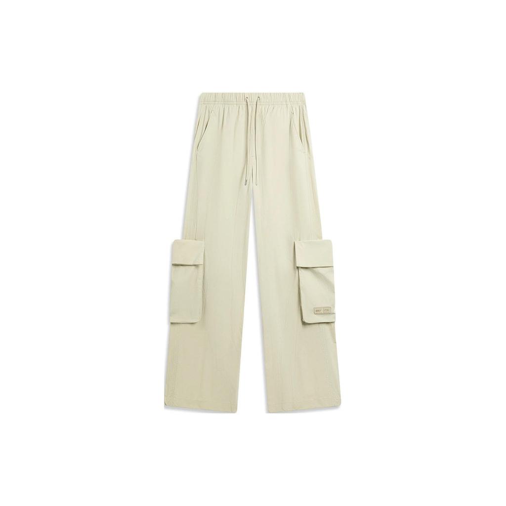 Li Ning Sports Lifestyle Series однотонные свободные прямые трикотажные спортивные брюки женские плавки из пеноматериала цвета хаки AYKU670-1