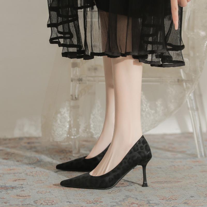 Leopard print pointed high heels women's thin heels 2025 autumn new niche design fashionable, sexy and elegant professional single shoes