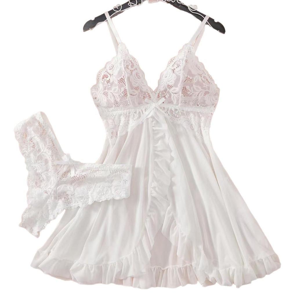 Сексуальное кружевное сетчатое нижнее белье в европейском и американском стиле - Прозрачная ночная сорочка с подвязками для женщин