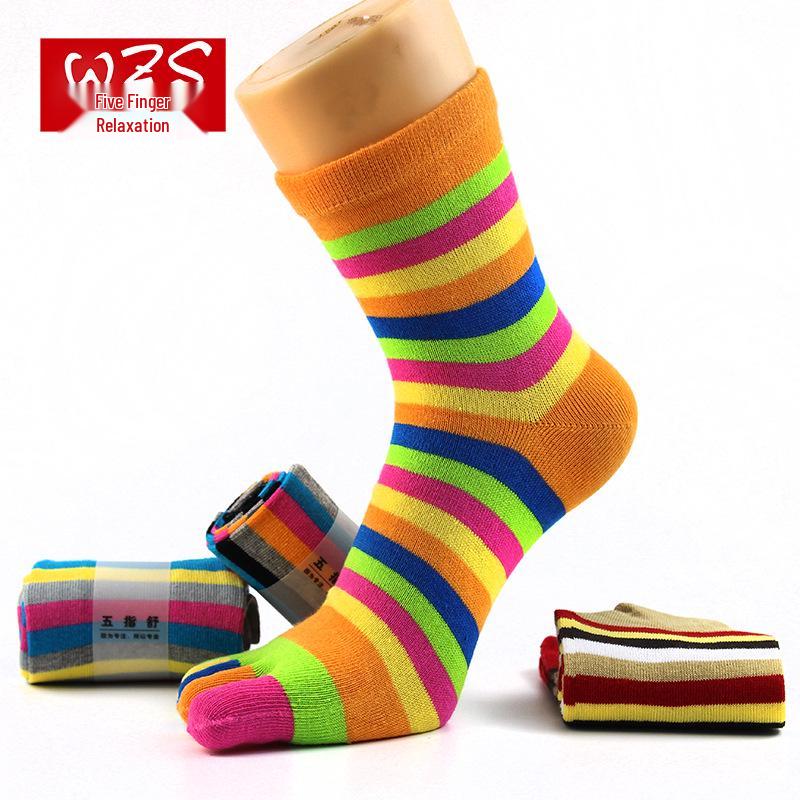 Женские цветные хлопковые носки до середины икры с пятью пальцами - Влагоотводящие, стиль носка для всех сезонов