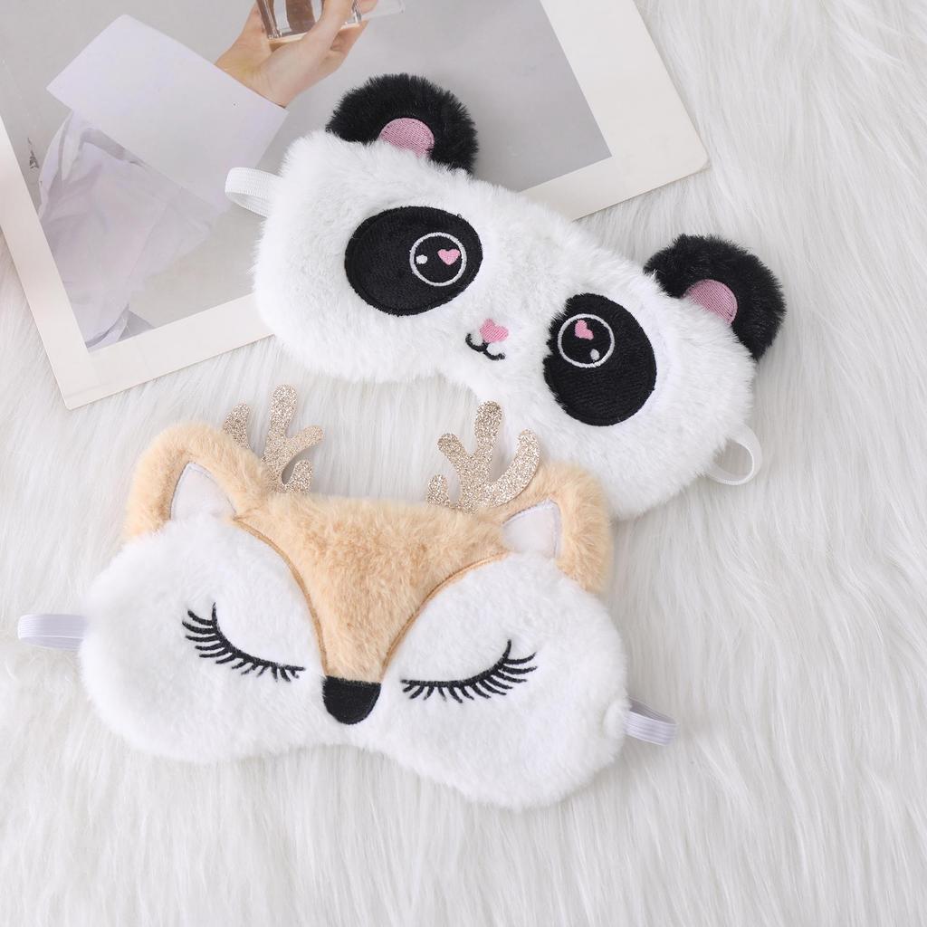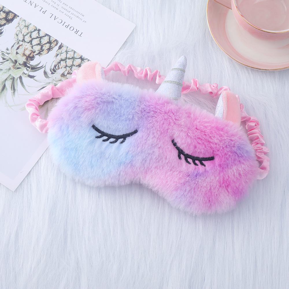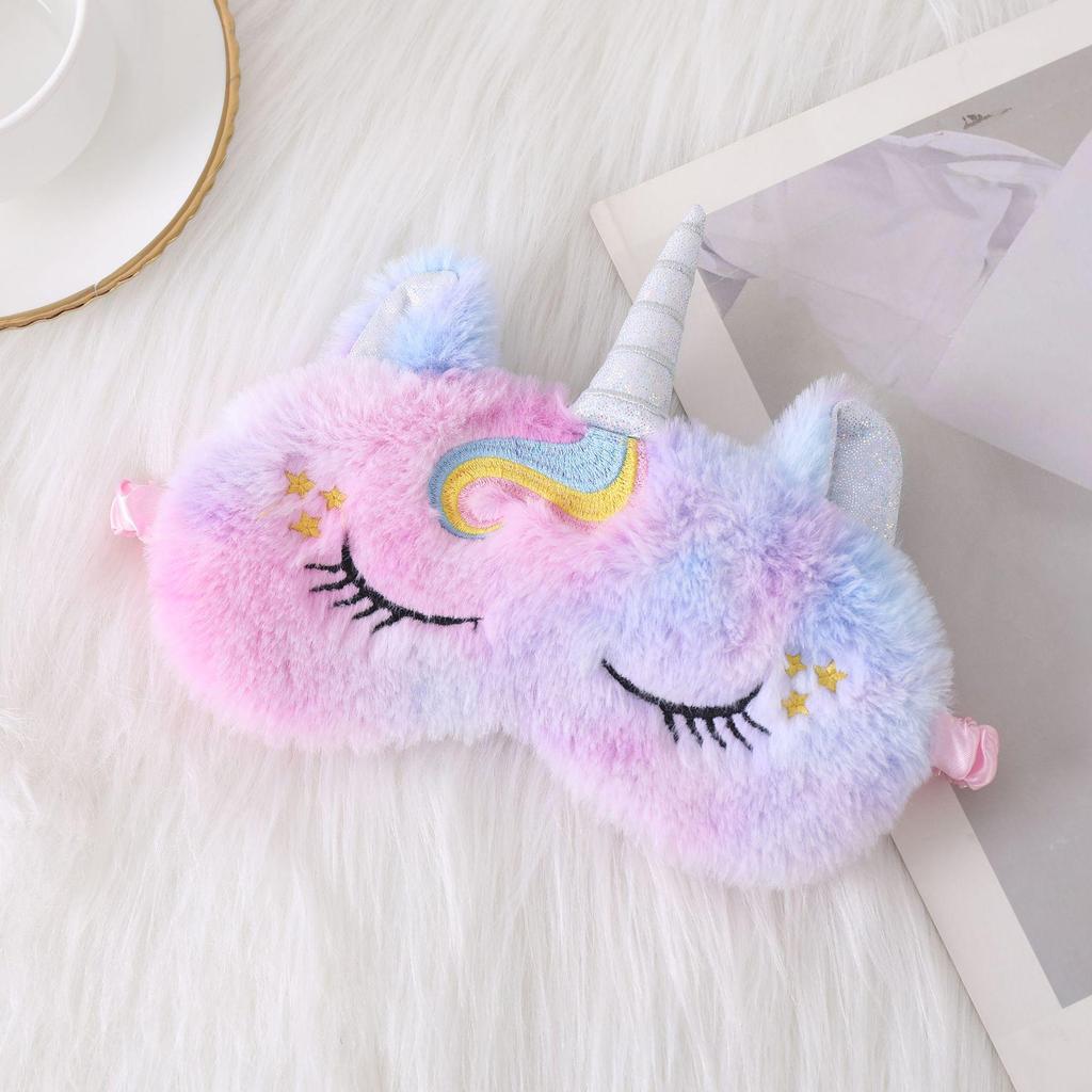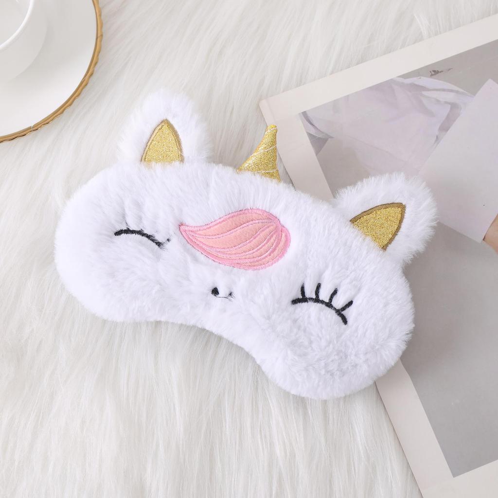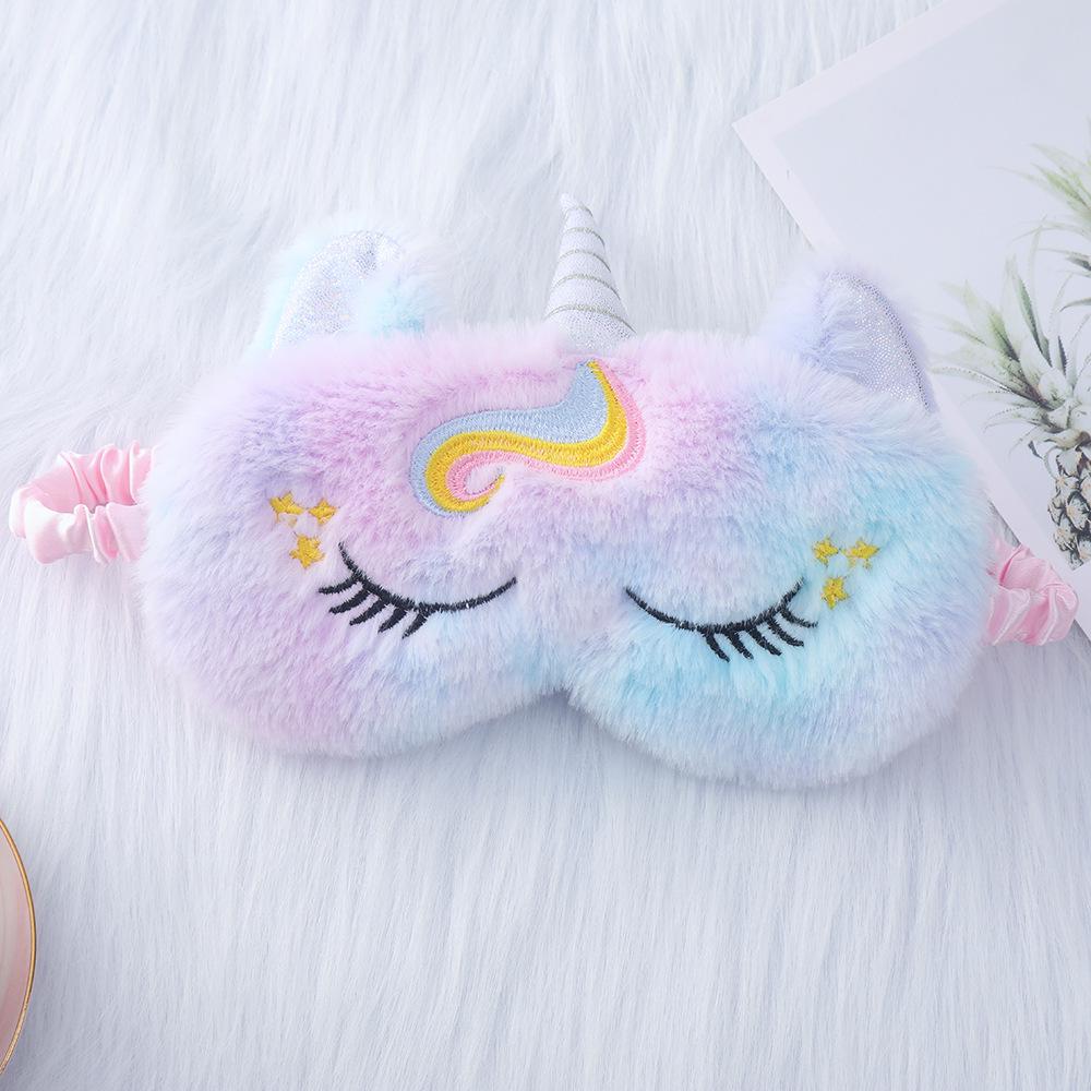 Плюшевая маска для глаз с ушками единорога и вышивкой в виде кролика для сна и защиты от света