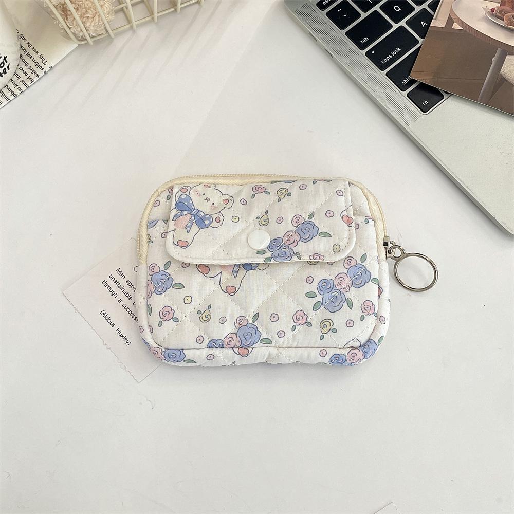 412221 Очаровательная мультяшная стеганая сумка для хранения с цветочным принтом, держатель для документов, кошелек для монет и органайзер для карт