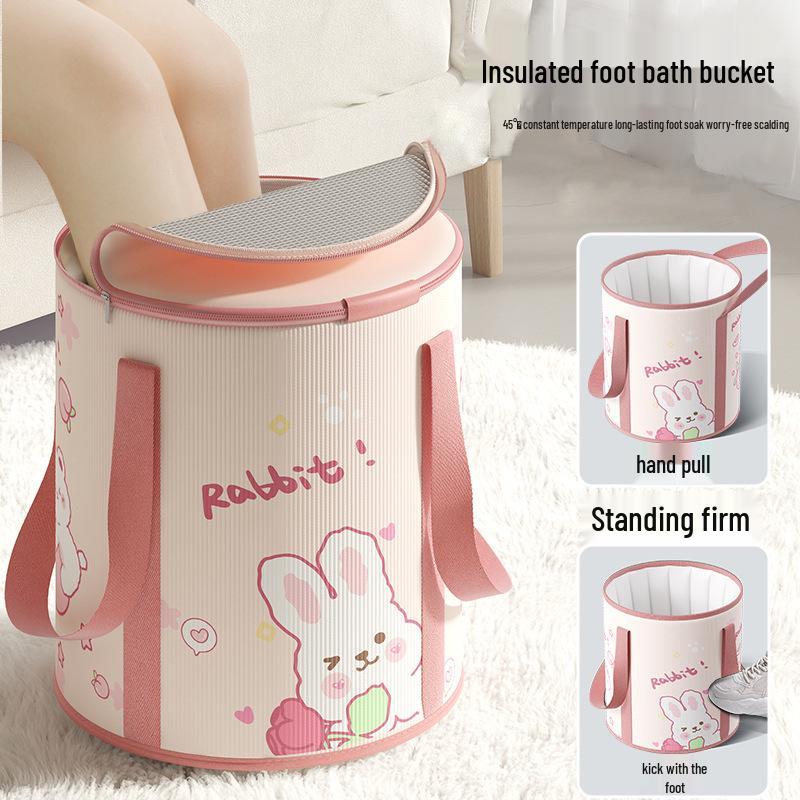 Мультяшное изолированное складное ведро для ножной ванны с крышкой - Портативное, утолщенное для глубокого замачивания