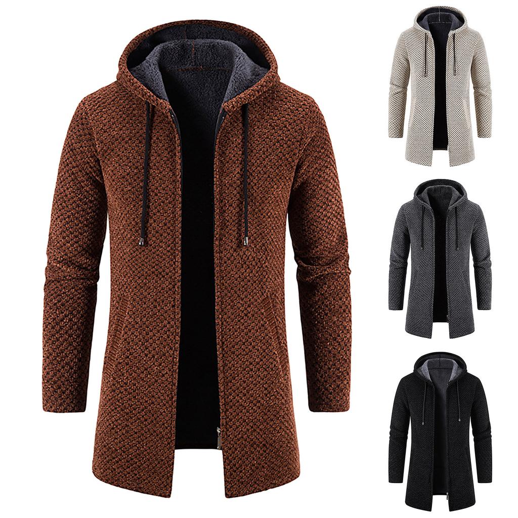 Мужское пальто средней длины с капюшоном, плюшевое клетчатое вязаное пальто на шнурке, свитер, теплые однотонные куртки, топы — купить товар онлайн с бесплатной доставкой по всему миру!