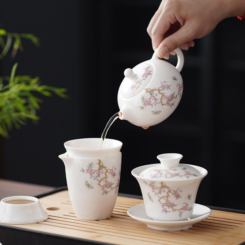 Простой нефритовый чайный сервиз из сала, кунг-фу, китайский, с глицинией, легкий, роскошный подарочный набор в коробке