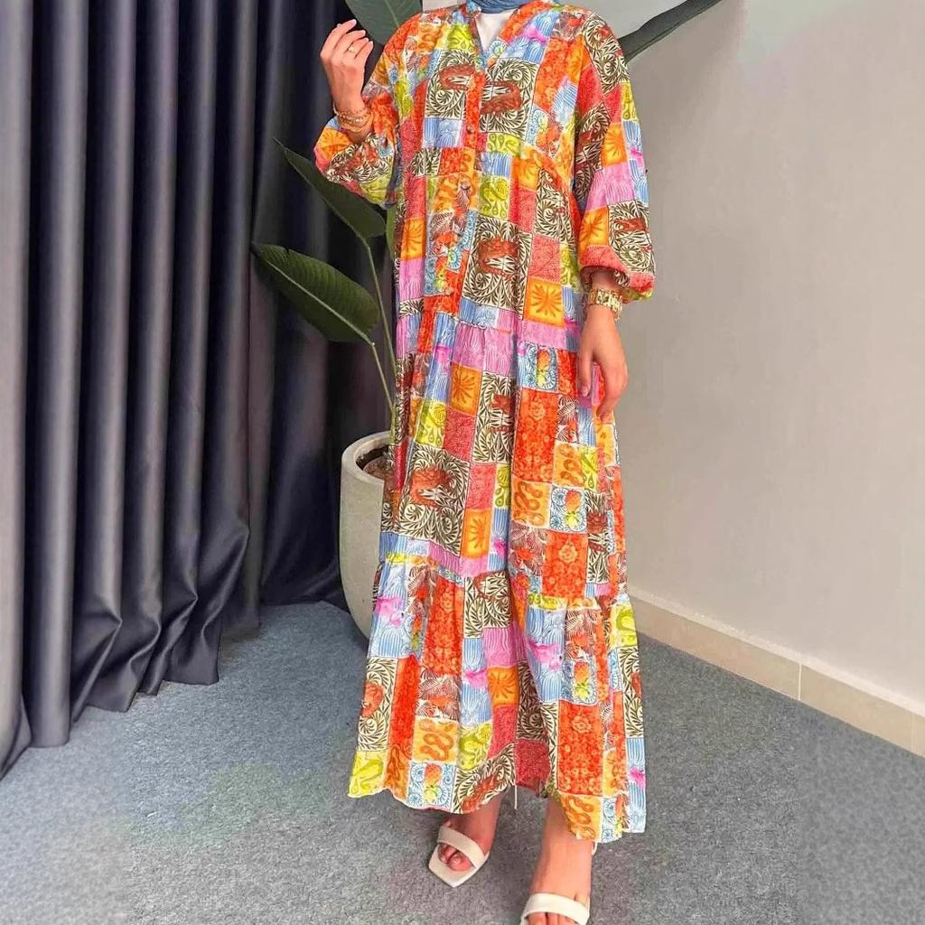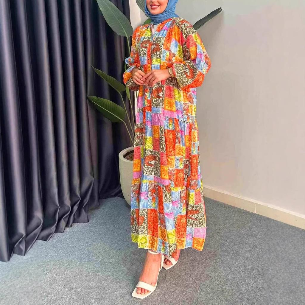 Женское длинное платье с длинным рукавом, V-образным вырезом и богемным принтом