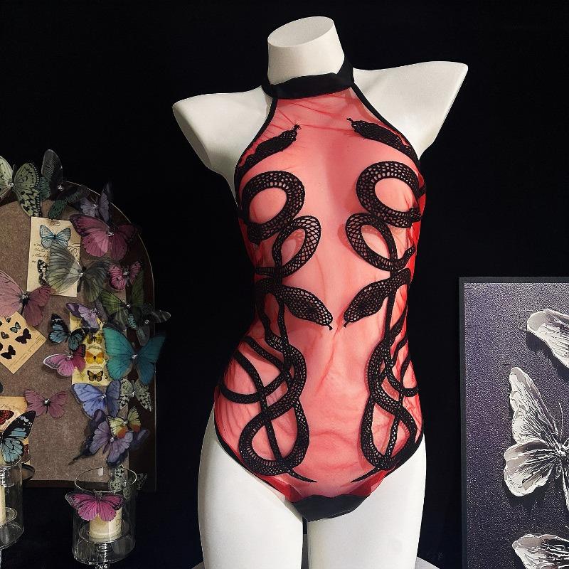 Сексуальное нижнее белье змея новое сексуальное перспективное сетчатое змея змея вышитый комбинезон ультратонкая сексуальная пижама женская