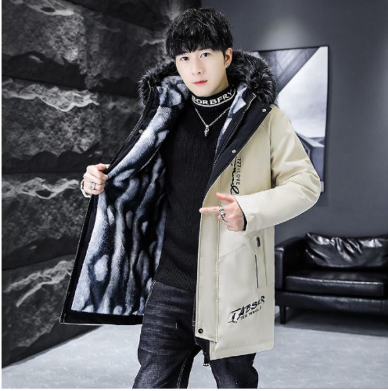 Мужская зимняя куртка Plus Velvet Thicked Mid-Line с капюшоном, модная молодежная теплая мужская куртка с капюшоном