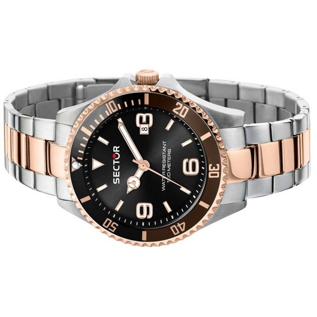 Восстановленные часы Sector 230 с черным циферблатом, двухцветные, из нержавеющей стали, кварцевые R3253161019 100M, мужские