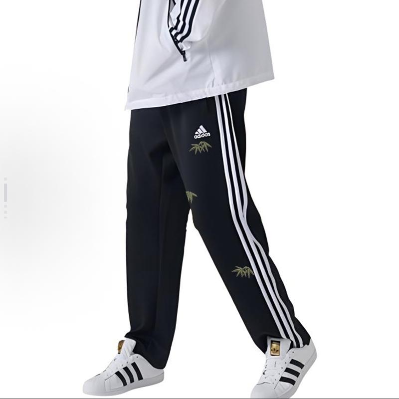 Adidas Вышивка «Искусство бамбуковых листьев» Универсальные полосатые прямые ретро вязаные спортивные штаны Унисекс штаны Черные Белые TR30PR-BW(TEAM702-BW10)