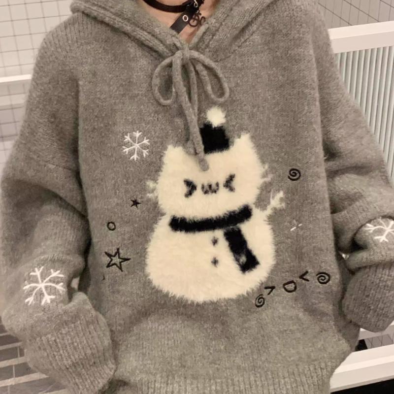 Женский милый мультяшный свитер с капюшоном, корейский ленивый стиль, женский вязаный топ, осенний универсальный серый женский пуловер