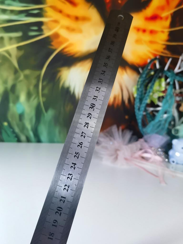 Линейка строительная 40 см Двусторонняя, с одной стороны см, с другой - дюймы Металлическая, толстая, не сгибается. Достаточно тяжёлая Качество отличное, цифры чёткие. На выбор разные размеры 👌