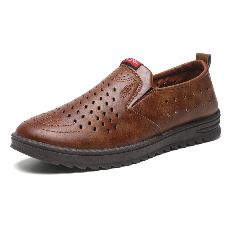 Летние мужские сандалии из сетки, перфорированные кожаные туфли, мягкая кожа, прохладные кожаные туфли, дышащие туфли с отверстиями, мужская обувь