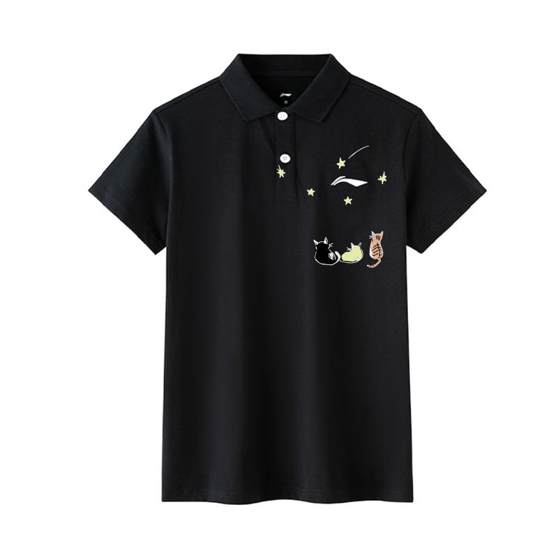 Li Ning Stars Повседневная Универсальная Мода Трендовый Принт Однотонная Дышащая Повседневная Футболка-поло с Коротким Рукавом Унисекс Футболки-поло APLT137-1(TEAM702-A25)