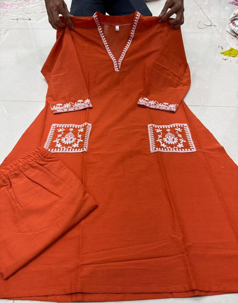 Женский дизайнерский комплект курта и брюк из плотного хлопка, вышитый, праздничный наряд, топ, туника, курти, платье