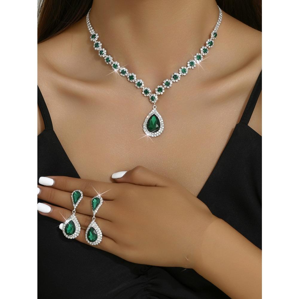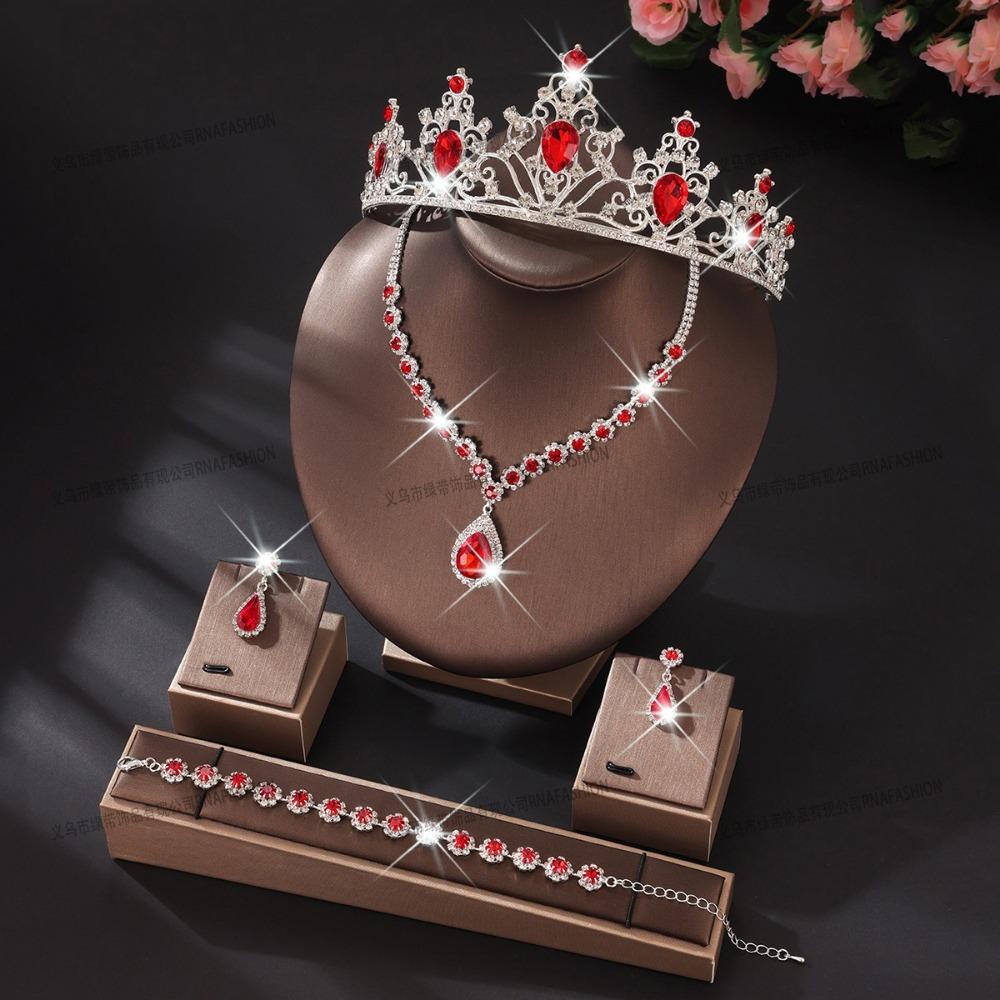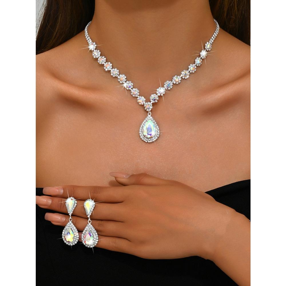Wedding Jewelry Set, Necklace, Stud Earrings, Bracelet, Three-piece Set, Full of Diamonds and Flowers, Multi-color Set.