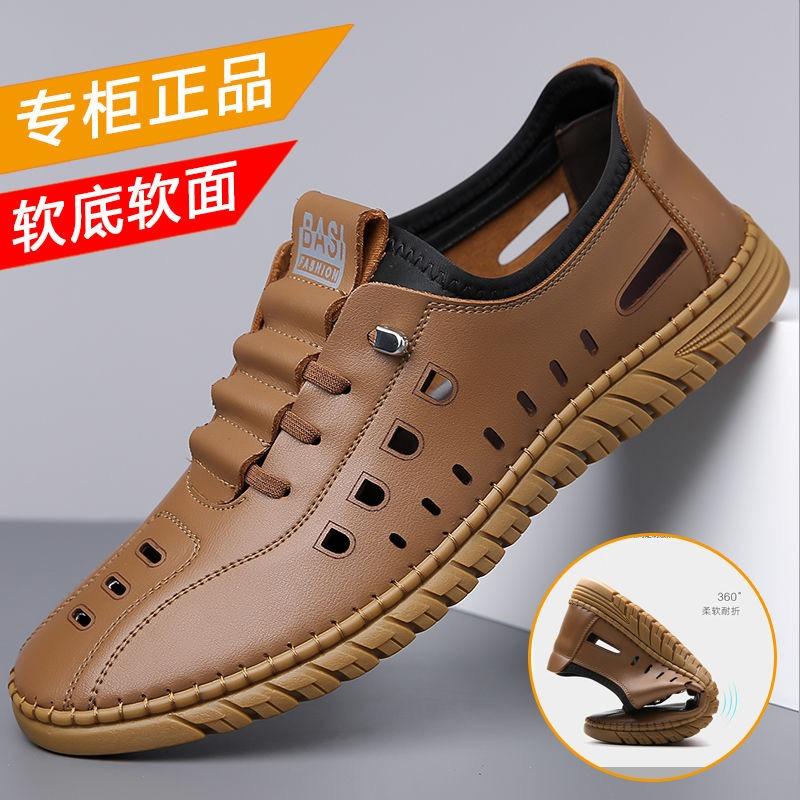 Полые повседневные кожаные туфли мужские летние новые дышащие сетчатые туфли с отверстиями на одной ноге плоские туфли мужские