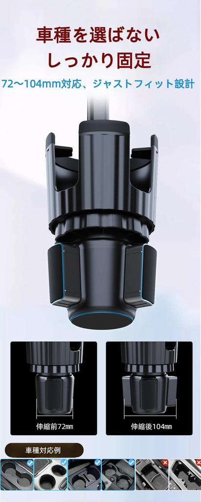 [Совместим с широким спектром смартфонов и подходит для больших подстаканников + подходит для широкого спектра транспортных средств] Совместим с широким спектром смартфонов от 4 до 7 дюймов, включая почти все модели, в том числе серии iPhone 15, 14 Pro Max, 14 Plus, 14, 13, 13 Pro, 13 Pro Max, 13 Mini и 12. Его можно использовать даже с толстыми чехлами.. Подстаканник предназначен для стаканов диаметром примерно от 3 до 4,3 дюймов. (от 72 до 104 мм). Телескопическое основание расширяется от 72 мм в основании до максимума 104 мм, что делает его совместимым с широким спектром транспортных средств, включая легковые автомобили, внедорожники, грузовики, автодома и гольф-кары.. Он также может надежно хранить большие стаканы и бутылки для воды.. Нескользящая конструкция обеспечивает надежную фиксацию одним щелчком, и она устойчива к тряске и вибрациям во время вождения, обеспечивая безопасное и надежное использование.