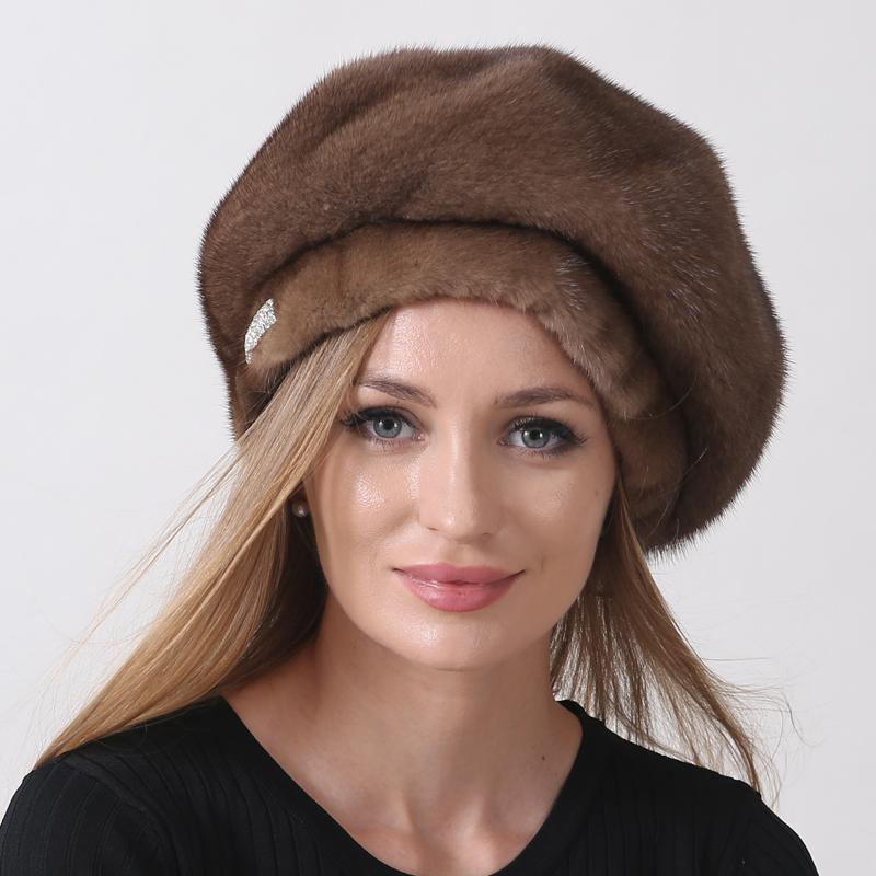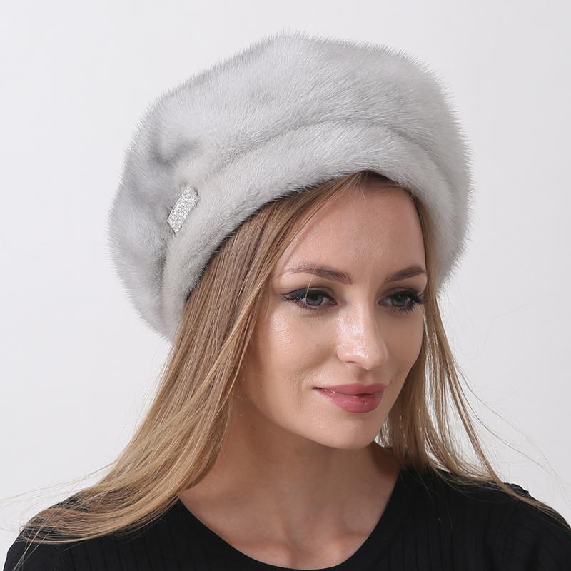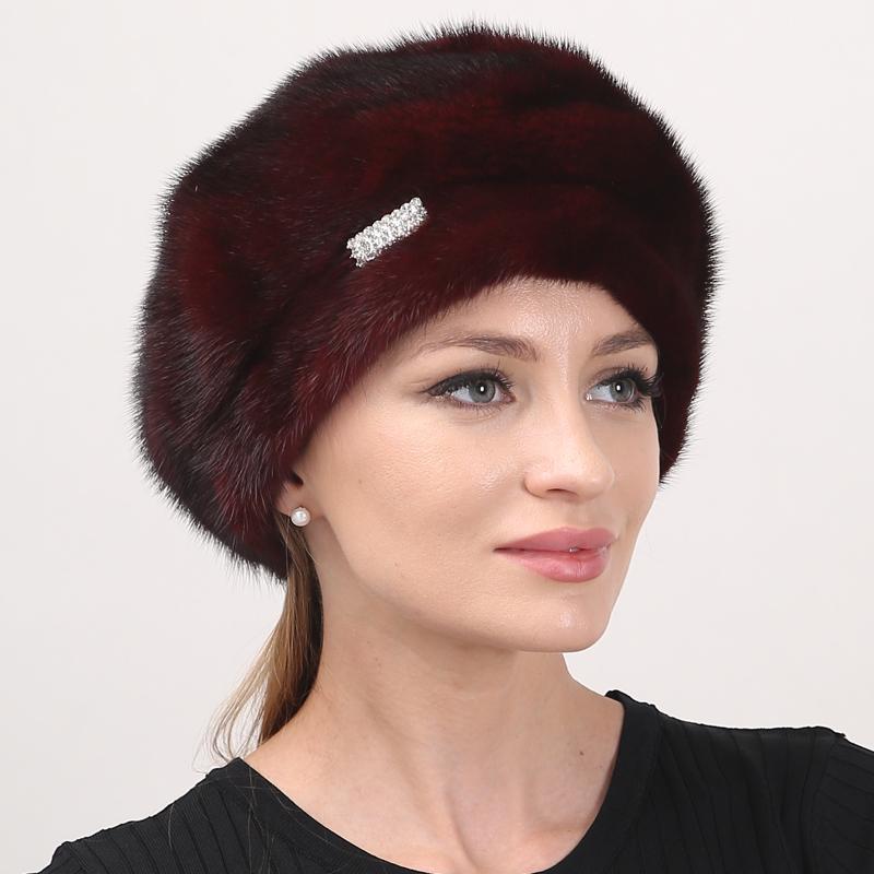 Зимняя шапка для женщин Береты из натурального меха норки Пушистая русская шапка