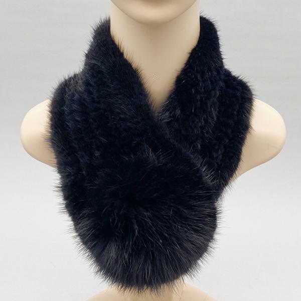 Женский шарф Шарф из натурального меха норки Зимние женские теплые шали Стильный однотонный вязаный шарф-манишка 62смx10см
