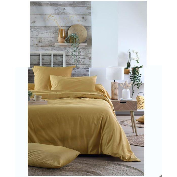 1 Taie d'oreiller percale de coton uni 63 x 63 cm Elysee moutarde