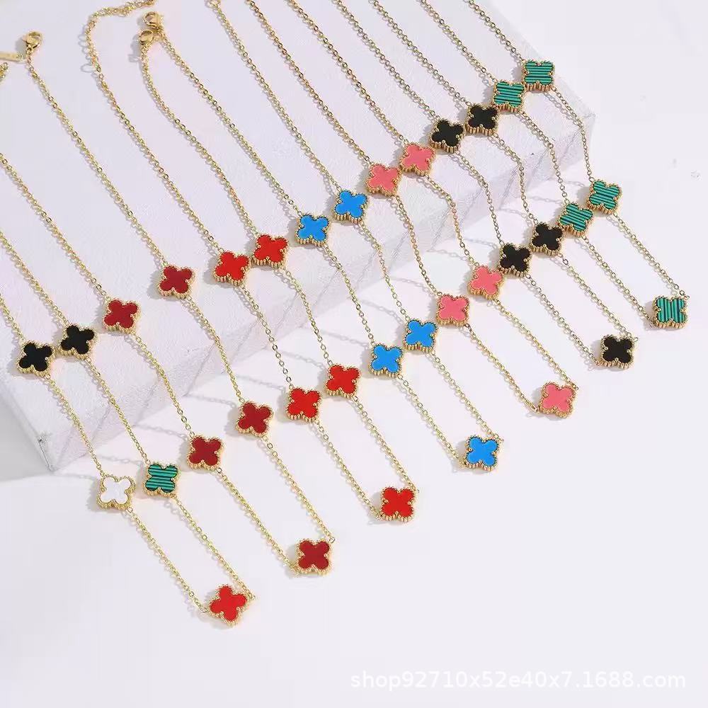 Ожерелье Двусторонний Клевер Удачи Титановая Сталь 18К Золото Титановая Сталь Ожерелье