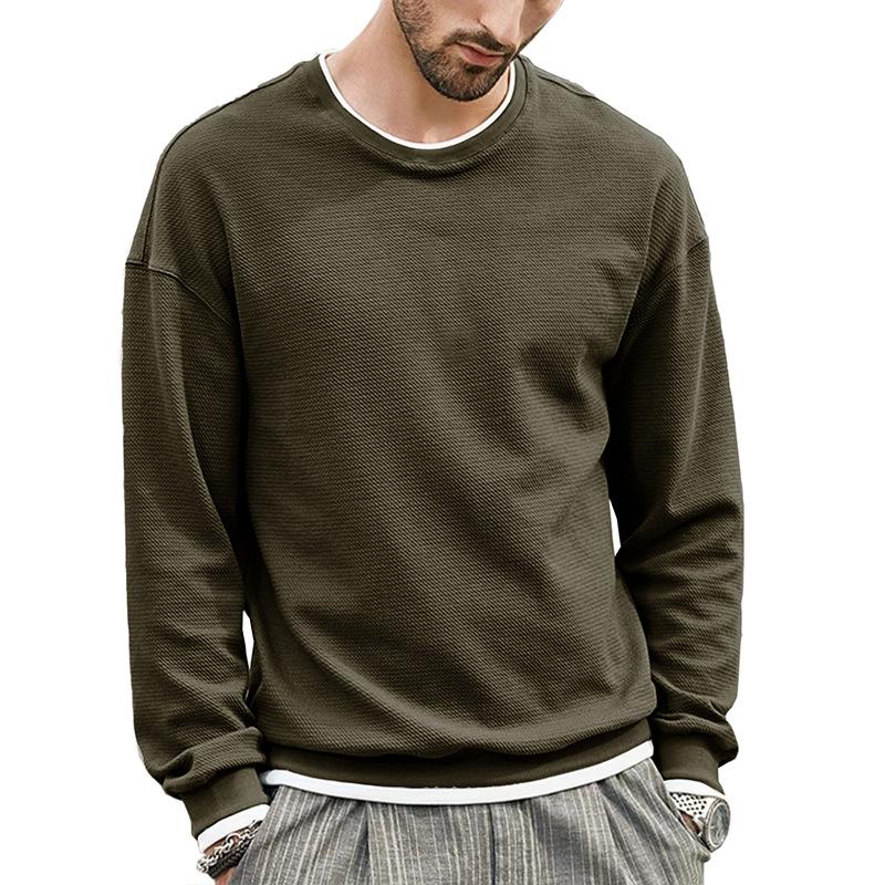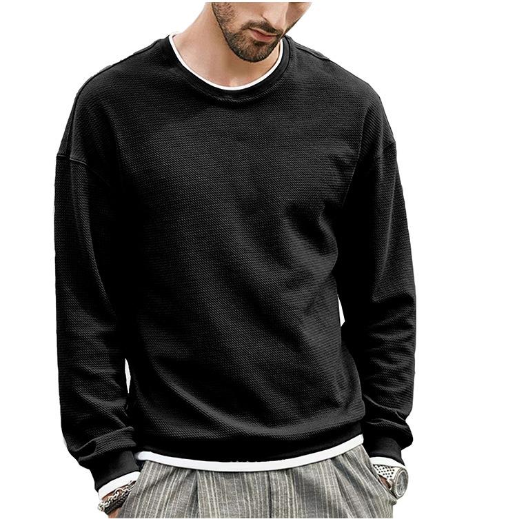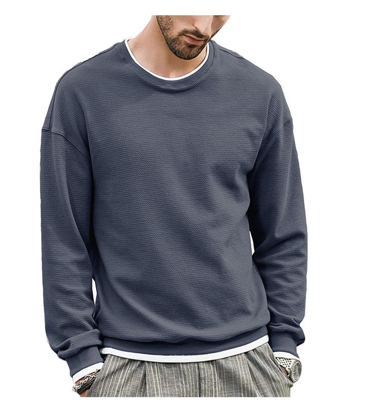 Осенне-зимний мужской свитер, однотонная футболка с круглым вырезом, мужская подкладка