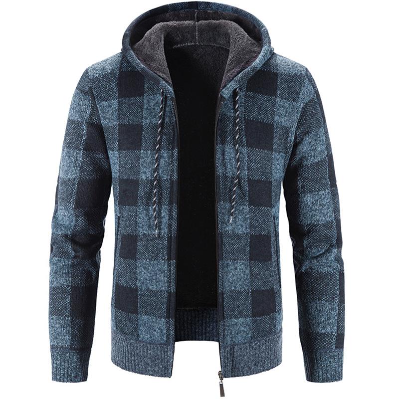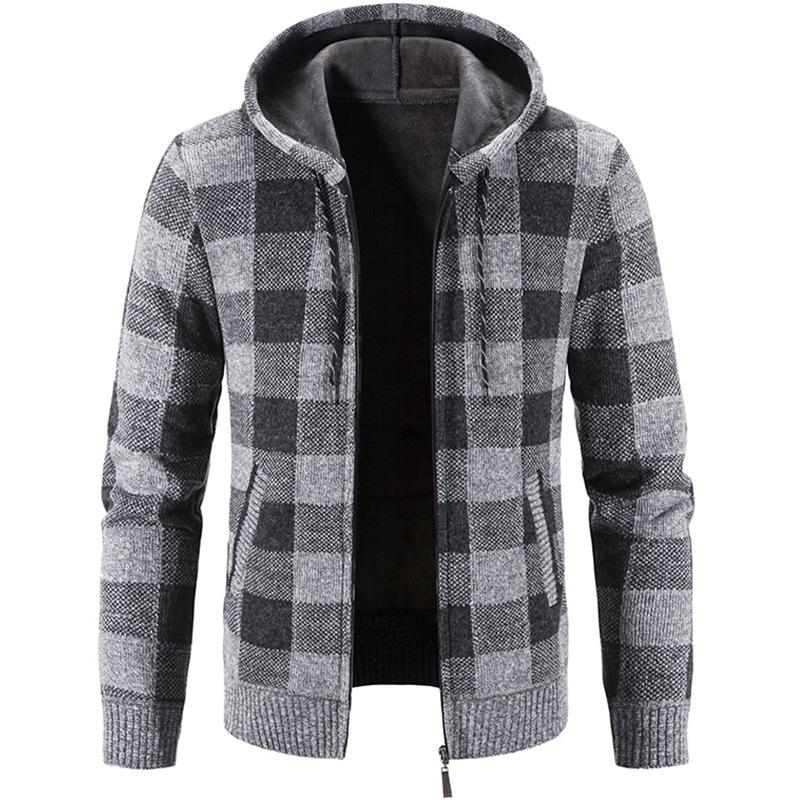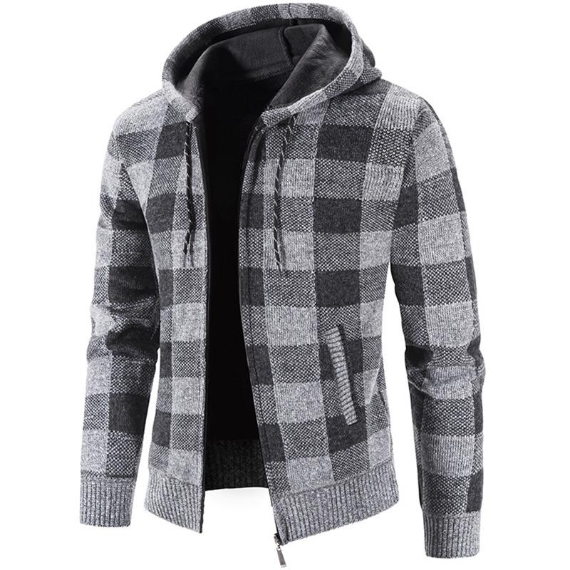 Осенне-зимняя мужская куртка, флисовый свитер с капюшоном на молнии, клетчатая повседневная мужская куртка