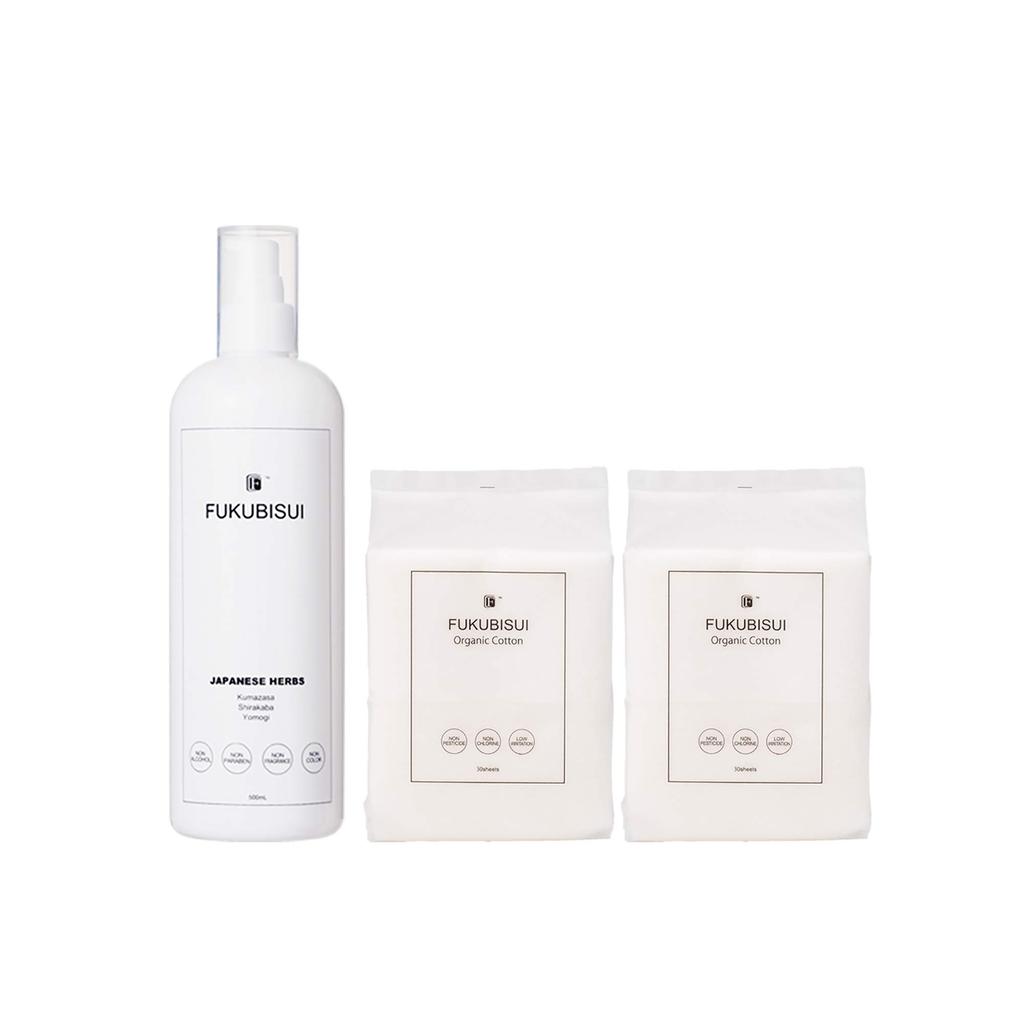 [Выгодный набор Fukumisui] Этот выгодный набор включает Fukumisui и органический хлопок из серии Fukumisui, «косметику-талисман» для современной кожи. Предотвращает сухость и другие раздражения кожи, обеспечивает достаточное увлажнение и кондиционирует кожу для улучшения ухода за ней.. Фукумисуи, лосьон для лица и тела, формула которого содержит растительные экстракты полыни, бамбукового тростника и березового сока, которые долгое время использовались в Японии в качестве лекарственных трав, можно нежно наносить с помощью пуховки из 100% органического хлопка, тщательно выращенного в Танзании, Африка. Исключительно мягкий хлопок сводит к минимуму раздражение кожи, не отбелен и не содержит ненужных химических веществ, что делает его безопасным для использования с лосьоном для очищения или в качестве хлопковых подушечек.